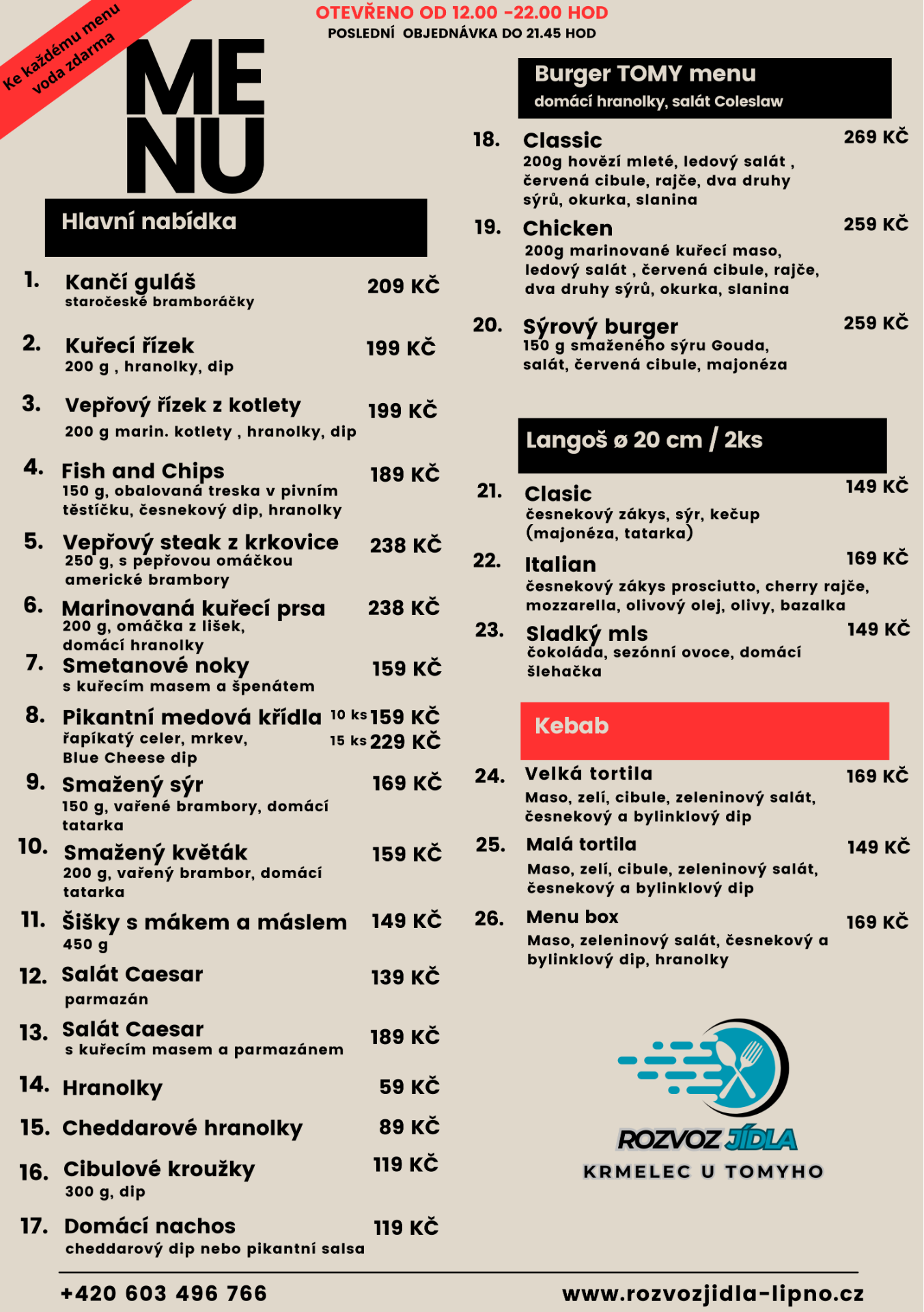Poslední objednávky na rozvoz přijímáme 21.45 hod